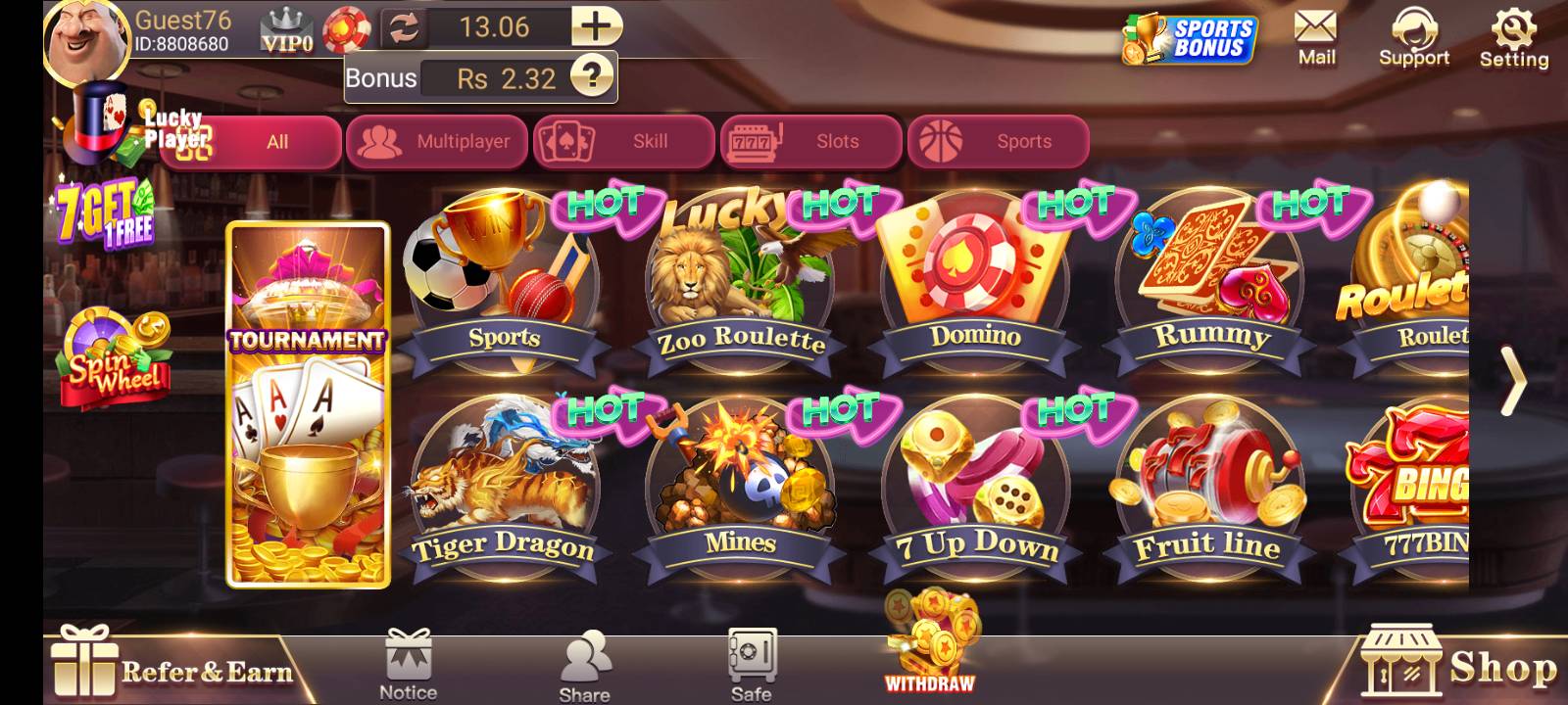 Multiplayer Games: Play with real opponents in games like Teen Patti and Rummy for a more thrilling experience.